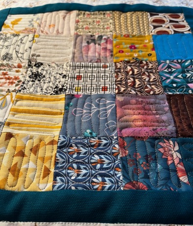 Die Auswahl der Stoffe beim Patchwork gleicht einem Spaziergang durch Erinnerungen und Fantasien. Jeder Stoff erzählt seine eigene Geschichte, trägt seine eigene Bedeutung. Es ist wie das Sammeln von Schätzen, von bunten Fragmenten des Lebens. Man wählt sie mit Bedacht aus, auf der Suche nach jenen, die harmonisch miteinander tanzen und ein zauberhaftes Mosaik bilden werden. Jeder Stoff birgt seine eigene Textur, seine eigene Farbe, seine eigene Seele, und doch sind sie alle dazu bestimmt, sich zu einem kunstvollen Ganzen zu vereinen.